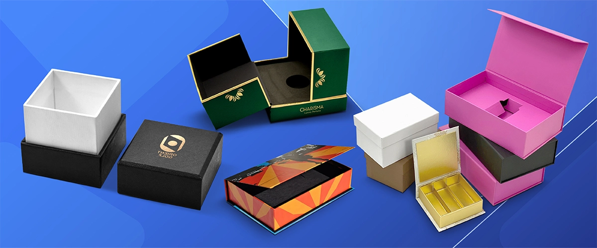 Custom rigid boxes, also known as setup boxes are high-end packaging solutions crafted from thick, durable chipboard material (typically 2-3mm) wrapped with premium paper or fabric.